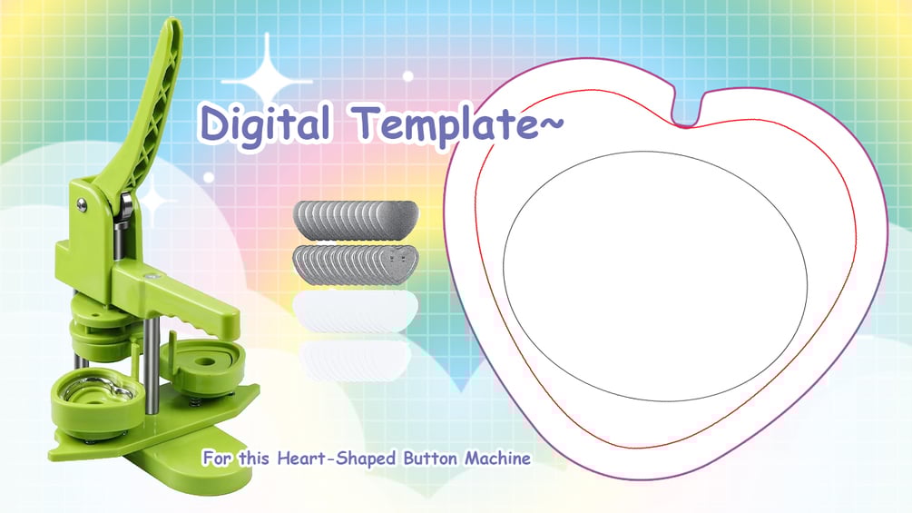 I couldn't find a digital asset for this anywhere, so I made it myself. Compatible with the Happizza Heart-Shaped Button Maker Machine, and I'm sure other Heart-Shaped button makers sold on Amazon!